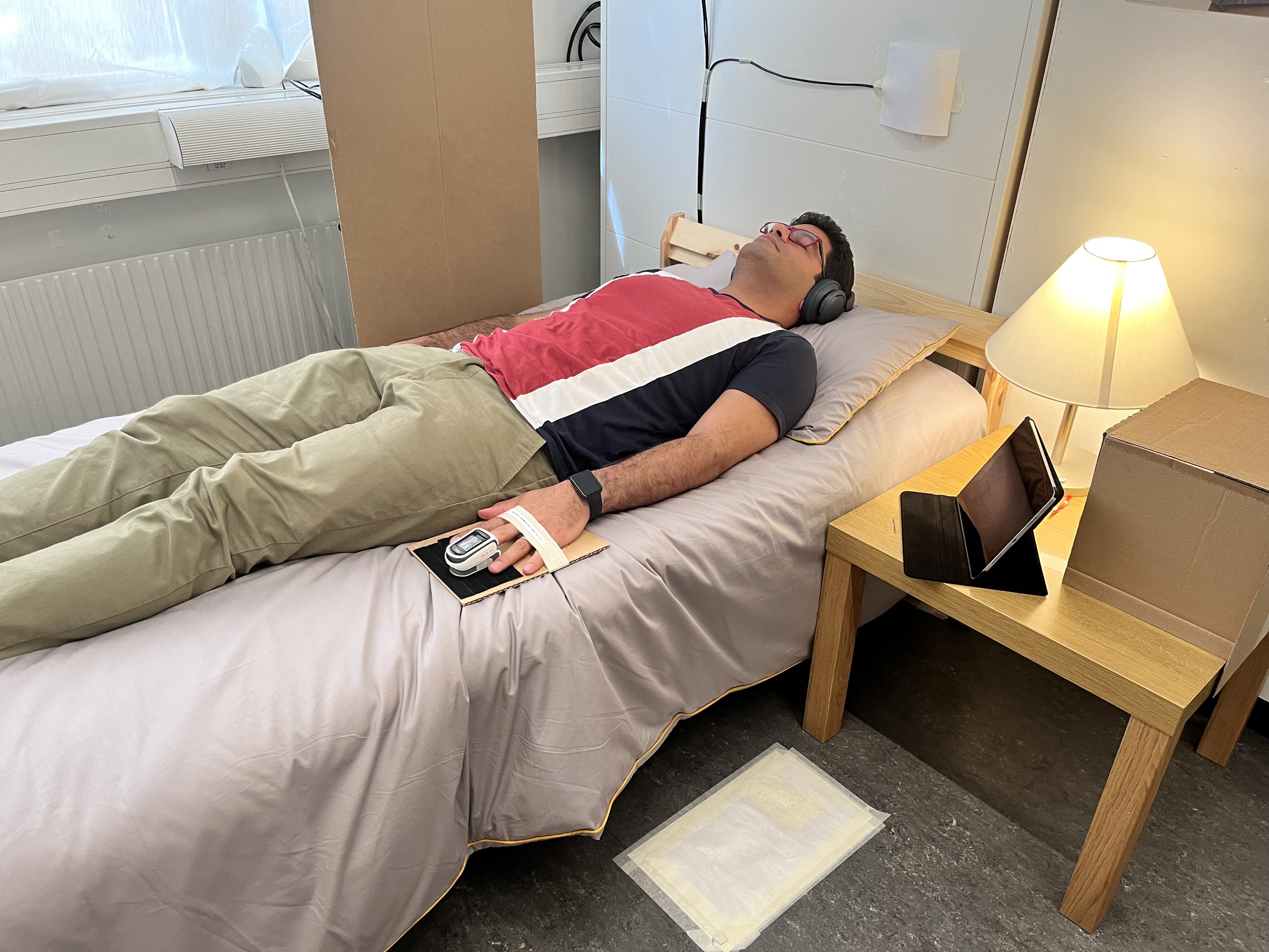 70 people participated in the research study. They have done three tasks in the "apartment" while the sensors detected their presence and breathing. They sorted groceries into kitchen cabinets, laid on a bed while listening to music and sat and watched emotional video clips.
