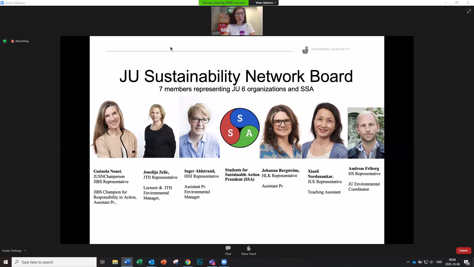 - Alla, och jag menar verkligen alla, är välkomna till JU Sustinability Network. Tillsammans kan vi göra skillnad, säger Guénola Nonet.