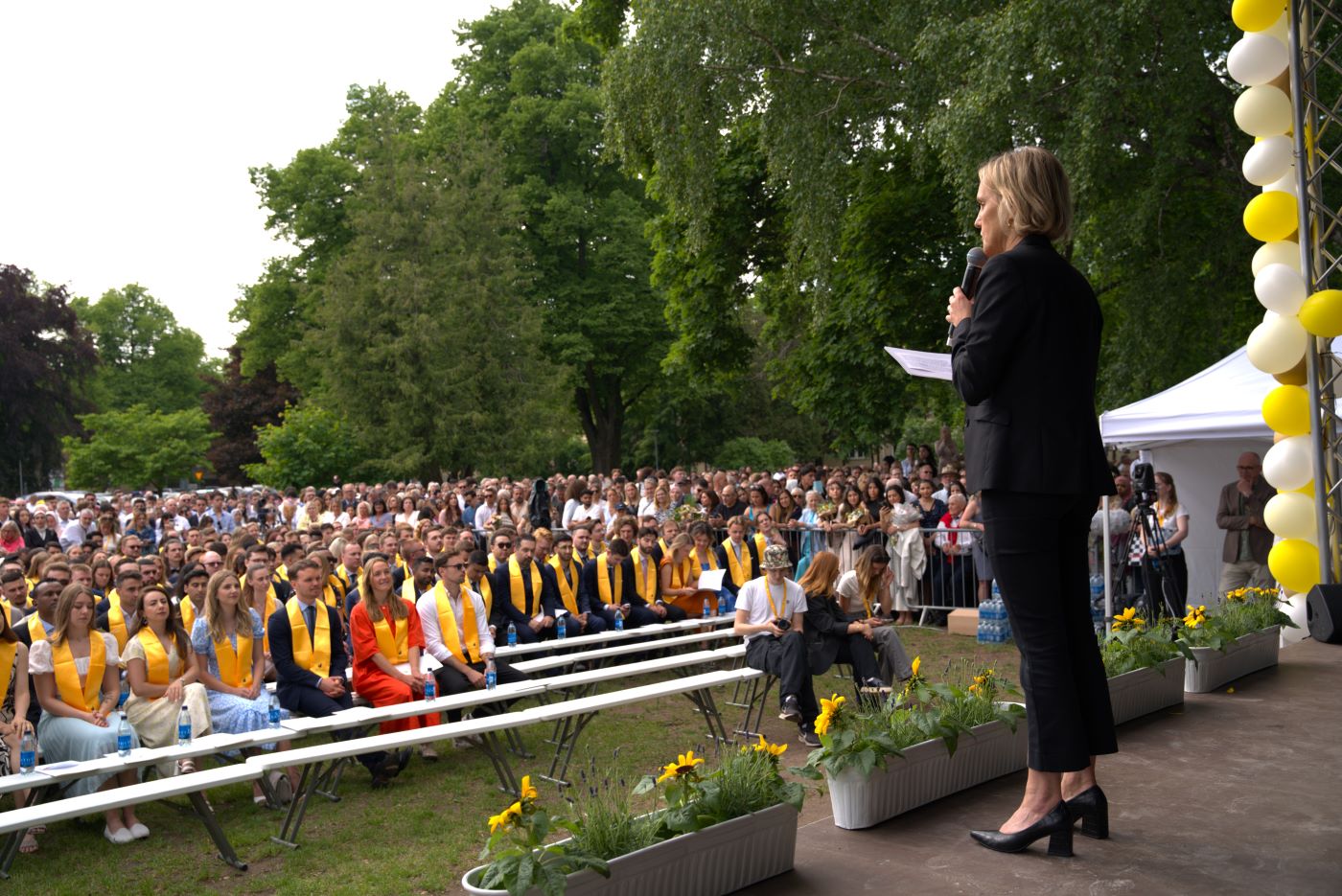 I sitt avskedstal uppmuntrade Johan Klaesson alla utexaminerade att använda den kunskap och expertis de har fått för att katalysera positiv förändring i omvärlden. Pontus Hjort, utexaminerad från International Economics, tyckte examensdagen rymde en stor känsla av glädje, men också tomhet.