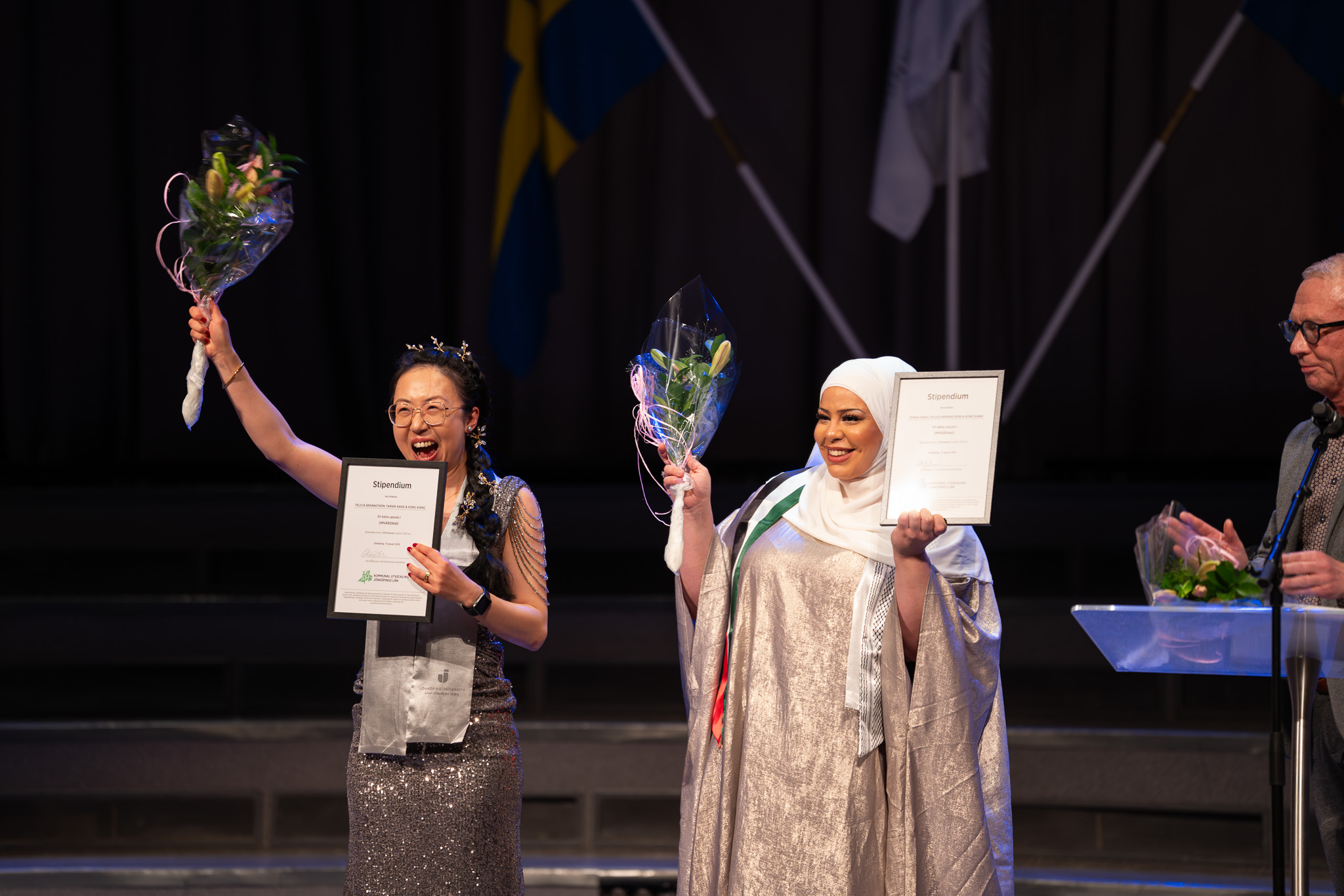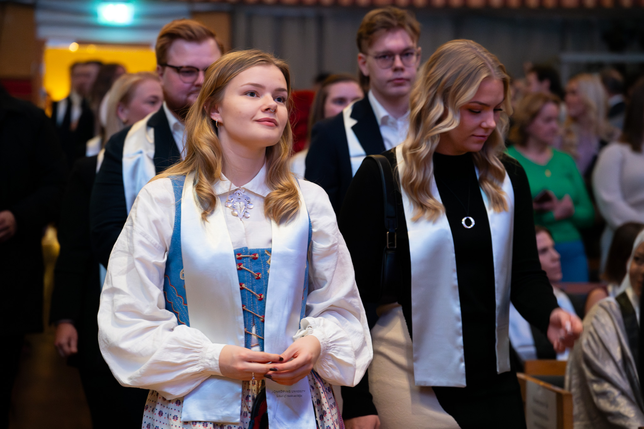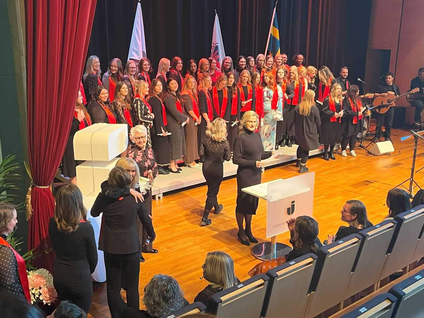 På HLK minglade studenterna först i orangeriet innan de tillsammans med nära och kära fick ta del av ceremonin i JU-aulan, som bjöd på tal, sång och musik och mycket glädje.