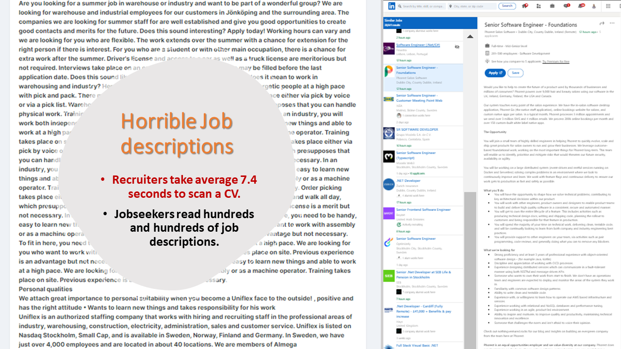 If you are a jobseeker, recruiter or job career advisor come and checkout what we have found out, what we are doing about it and how you can contribute towards a stress-less job search market.