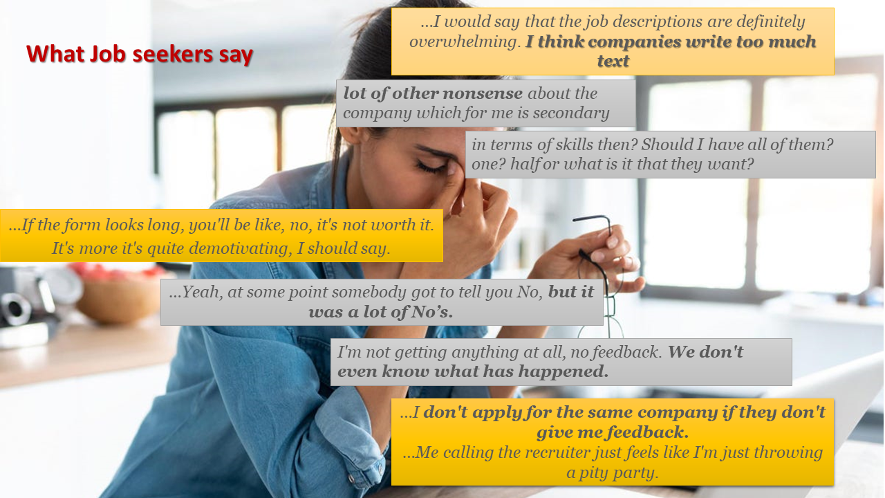 In order to redesign the overall UX of job search systems, one has to understand the broader context on which job seekers encounter these problems, frustrations and painpoints.